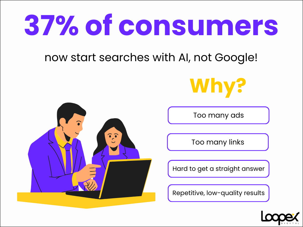 37% of consumers begin searches with AI tools instead of Google (Source). See core reasons below: