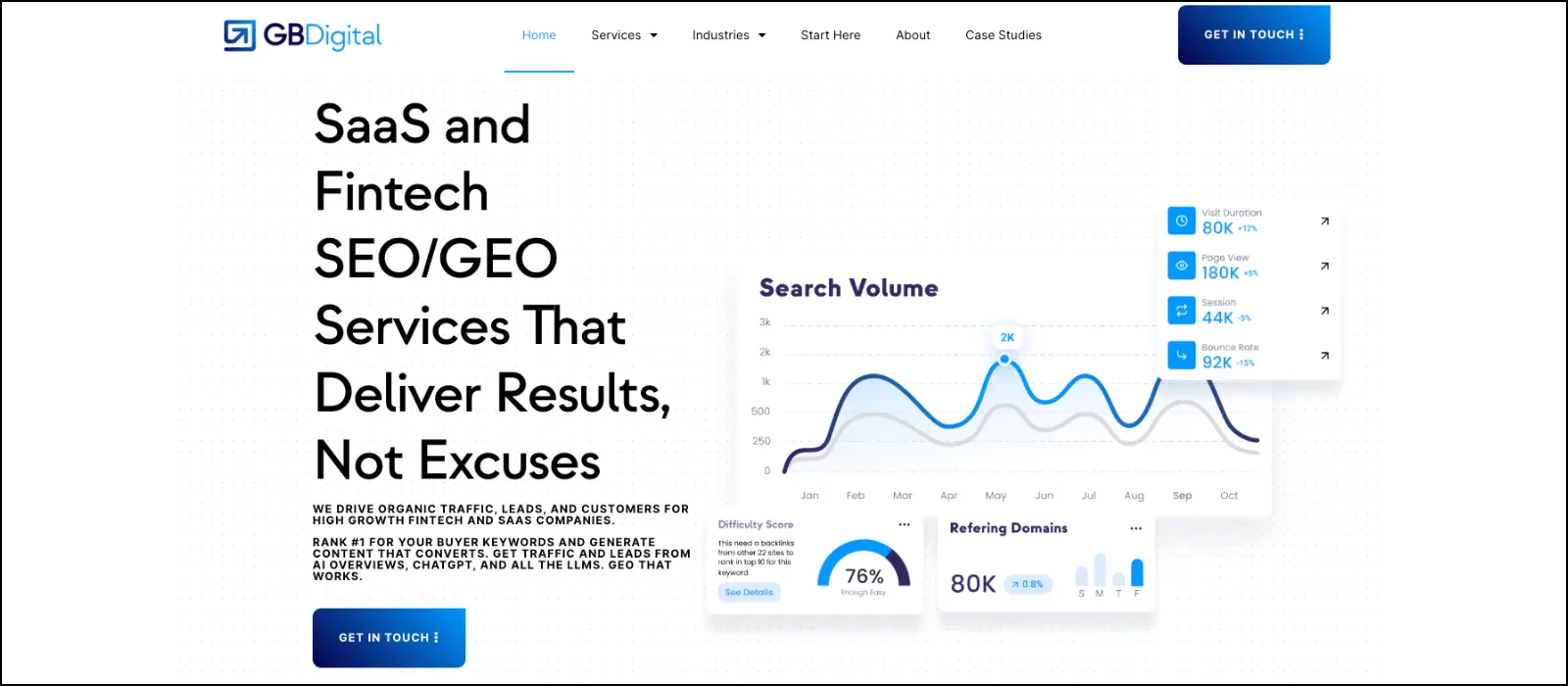 They’re also early leaders in GEO, optimizing content for AI-driven search engines as well as human readers, ensuring fintech brands stay visible in the highly competitive financial services market.