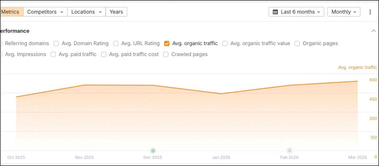 We started the campaign in October 2025. Even with a focused scope of 12 high-quality backlinks and three Digital PR campaigns, the compounding impact was clear across every metric.