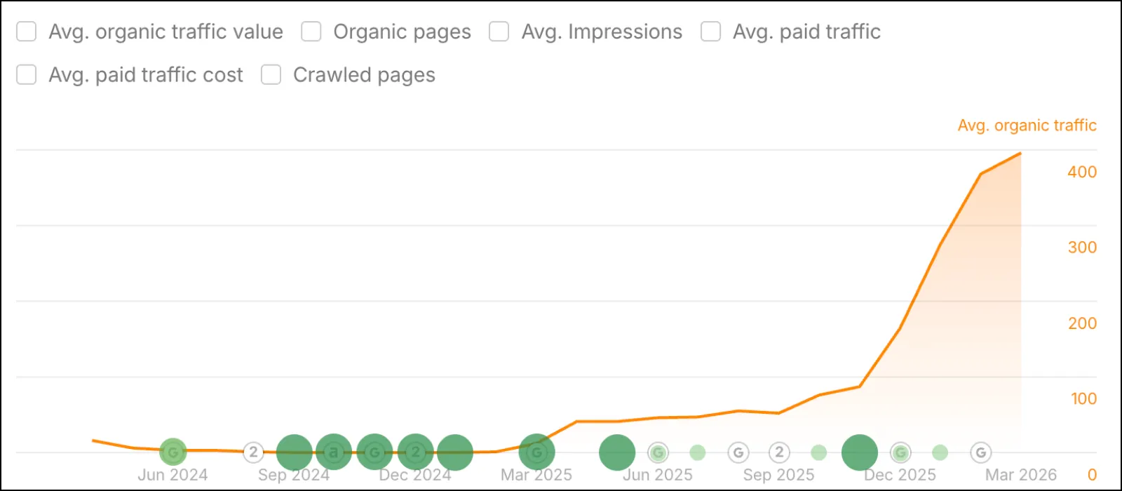 When the project began, theKOLLAB was receiving 213 monthly organic visitors. Our SEO team's combination of on-site optimization, content strategy, and link building took monthly traffic to 582. For a niche B2B agency in the crypto space, this growth shows the strategy is working and building momentum.
