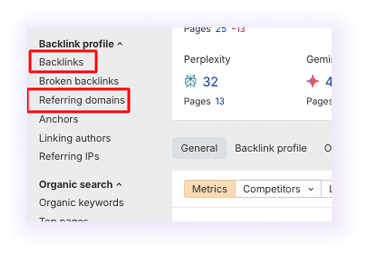 Finally, let’s measure your off-page SEO score to see your website’s backlink strength. Pay attention to these metrics: