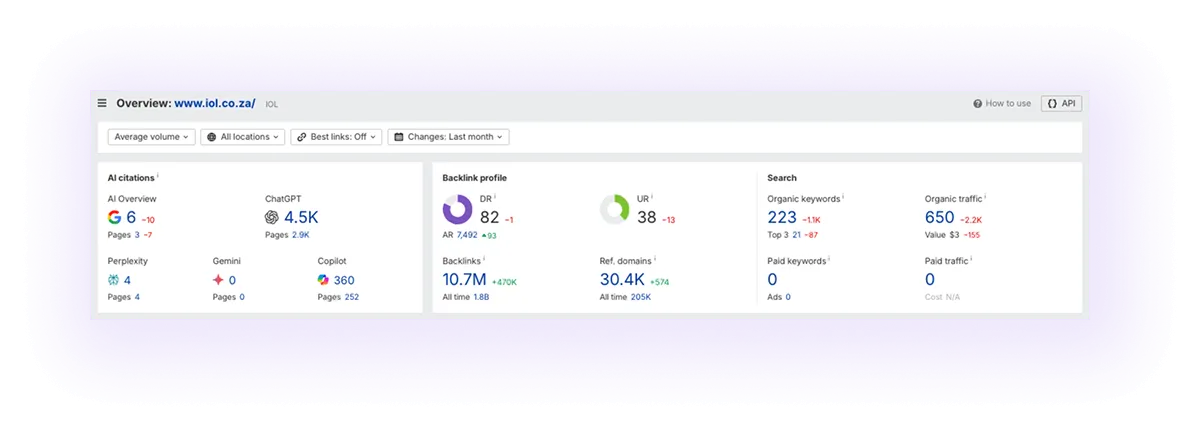 Ahrefs will show pages that mention your brand without a link back to your site, helping you identify unlinked brand mentions.