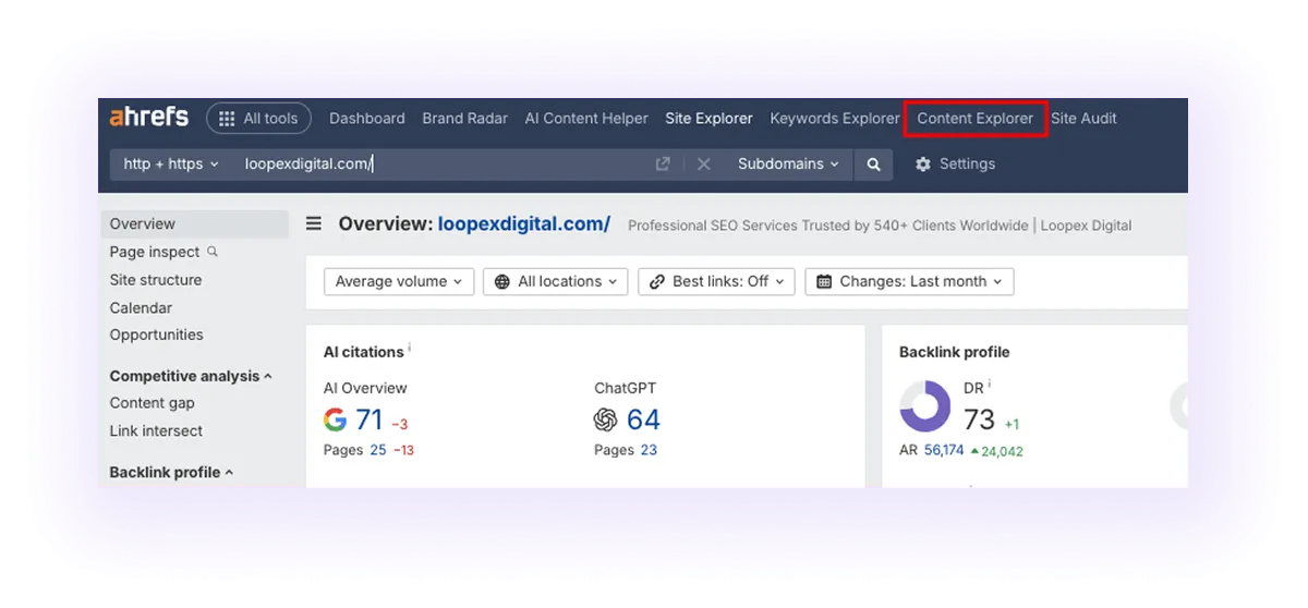 Ahrefs helps us analyze your competitors’ backlinks to identify patterns, gaps, and potential link sources. By reviewing sites that link to them, we can find opportunities to close gaps and build authority.