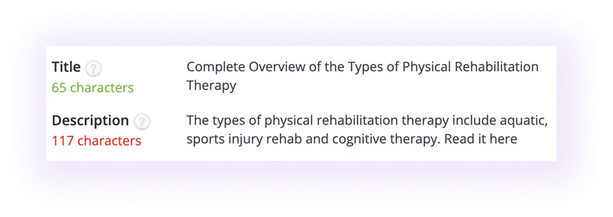 Here too, use these phrases naturally in titles, meta descriptions, headings, and page content, to give location signals and support your SEO for physical therapy clinics.